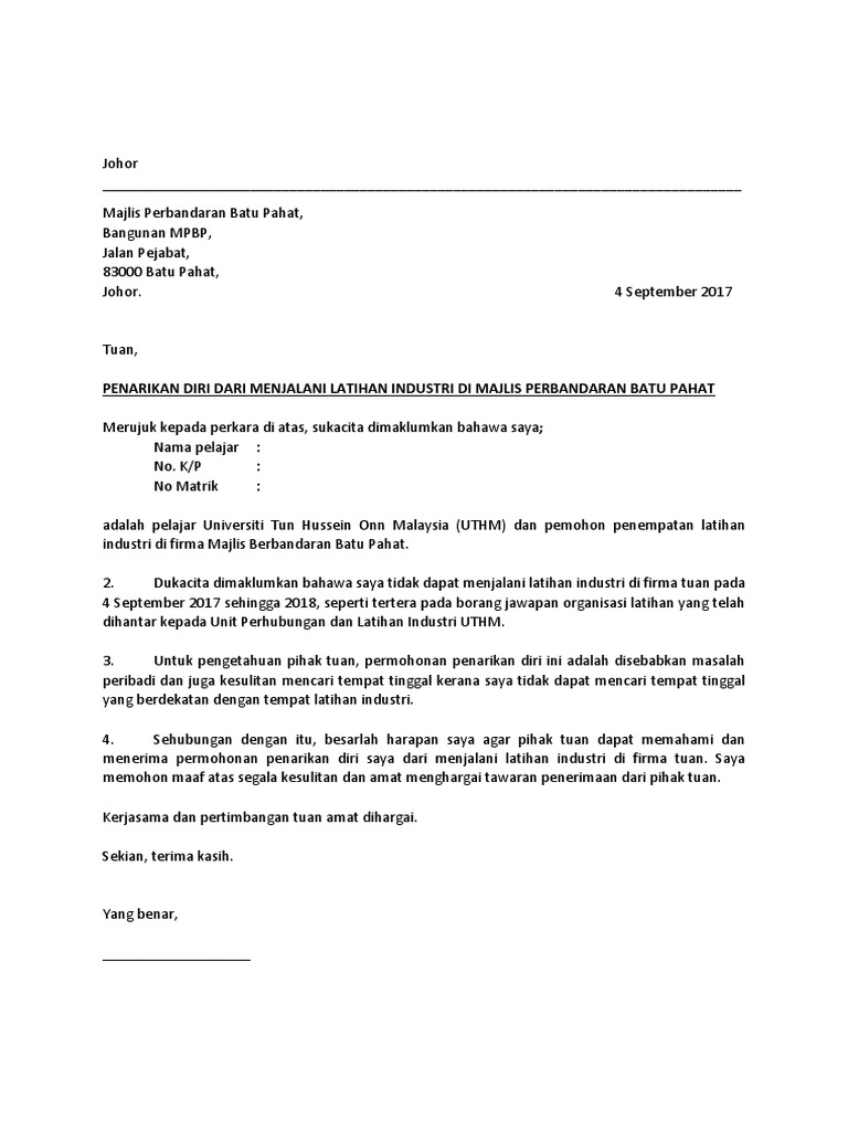 Cara Membuat Surat Rasmi Tarik Diri Dari Pengajian Tingkatan 6 - Mengundurkan diri dari organisasi, maka itu berarti jika ke depannya anda sudah tidak memiliki tanggung jawab lagi dalam organisasi tersebut.. Cara haiwan melindungi diri (teknik pengajaran eksplorasi 2013). Video cara membuat sebuah minuman yang sudah terkenal di asia tenggara dan asia selatan yaitu teh tarik. Surat kiriman rasmi berhenti tingkatan 6. Cara membuat surat resmi dalam bahasa inggris. Dari penjelasan cara membuat surat pernyataan bisa kamu praktekkan saat kamu membutuhkan surat pernyataan sebagai bukti di masa depan.